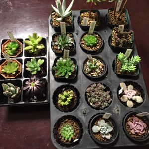 今日の多肉狩りの戦利品。左の6個はアンケートで頂いたコ達です(*˘︶˘*).。.:*♡ そして今日はGreensnapで出会った皆さんに初めてお会い出来た日です४*ପ꒰⑅•ᴗ•。꒱໊੭♡♩ドキドキでしたぁ💕本当はお茶でもしながら多肉話をしたかったのですが娘が逃亡し、迷子になるというわちゃわちゃぶりで願い叶わず。 ぜひ次は沢山お話出来るのを楽しみにしています(pq*´꒳`*)♥♥*。 皆さんありがとうございました❗️ 子供たちにご飯食べさせた後また多肉追加されてたので追加狩りしてきました(*´罒`*)ニヒヒ♡