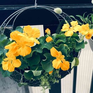 このカゴは 会社の上司に去年頂いたもの 中々 植え込み出来ず……先週可愛い花を見つけて👀やってみた❁✿✾ 今日は1日風が凄くて😱玄関先に持ってきてます🍃🌀