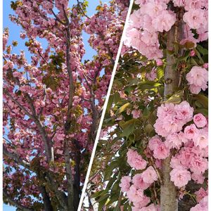 我が家の桜🌸記録用 今日の八重桜『関山』 樹齢約20年 4/6 八重紅枝垂れ桜(35年)& 陽光桜(10年) 他に河津桜(15年) 早い開花でも花つきは今ひとつ…
