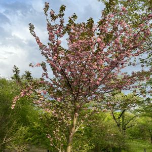 🌸カンザン🌸関山🌸 荒川堤から広まったサトザクラ、八重桜🌸の代表的な園芸品種。 花弁数は 25〜50枚。 塩漬けにされ、桜湯として利用されるみたいです😍 高さ10m程、花は紅色八重咲きで 新葉と共に開花🌸🌿 盃状の独特な樹形みたい😉 開花時期は 4月中旬〜4月下旬🌸 今、この関山が まだ🌸綺麗に見られました😆 昨日 4/16 夕方5時半頃 京都府立植物園 桜林🌸にて 🤳