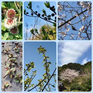 今日の彦島点描 ↩️の順に①シロツメクサ、咲いてました。②イヌビワ🐶 シルエットと新芽が美しい🌱 ③小学校の桜にコゲラさん🐦見えますか? ④山裾の素晴らしい桜🌸 ⑤柿の若葉が艶々と。⑥ど根性ドクダミᕦ(ò_óˇ)ᕤ