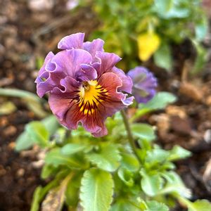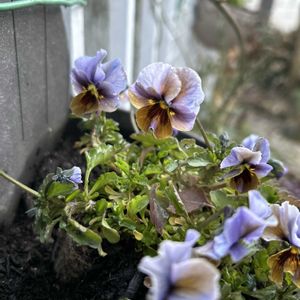 地植えのフリフリビオラ。 百円でたくさん買いました。 寒い🥶1日、牛フンを買ってきて土つくりしました。