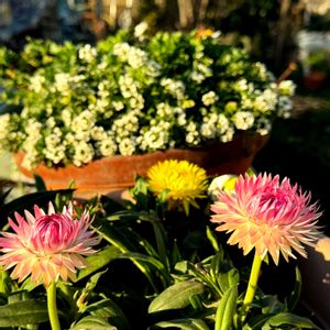 良い天気☀️ 早朝の畑は凍てついて 何もかも冷たく凍ってる🫢🧊 そんな中 この子達はものともせず🤩‼️ 輝いてた🤗💕 ヘリクリサム・ムギワラギク (帝王貝細工) 花言葉 『不滅の愛』 オーストラリア原産のお花 ヘリクリサムは、ギリシャ語の「太陽」と「金」を意味する言葉を合わせたものです。 ドライフラワー用の草花としては最も人気の高いお花です。 カサカサの紙のような花弁が面白い 咲き終わるとモフモフの綿毛姿に☝️ 実にユニークな植物🤩 大好きなお花🌼🌸🌺🥰 アリッサム(スイートアリッサム) 和名:ニワナズナ 花言葉 「優美」「美しさに優る価値」「飛躍」 可愛いお花😍 でも、本当は、、、 匂いが嫌い😅💦 お外で丁度良いお花🤗 寒い冬のお庭を明るくしてくれる そんな子達です🙌🥰💕