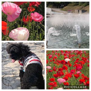 道の駅にて、お散歩🐩 ポピーが満開です。