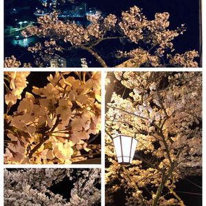夜桜見物に行きました。 風が強くて、少し寒い😨 でもたくさんの家族連も多くて賑わってました。