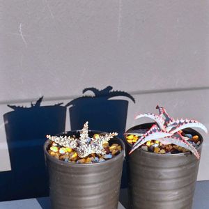 ①お迎えしたアロエちゃん✨ 何かカップルみたい🤭 ②右の子は色みがホント素敵🤤 ③左の子はとってもワイルド ④左の子のアップ😳 名前の通りゴジラの背ビレ感🦖 ⑤①をエモい感じに🤣🤣 まだまだちぃ〜っちゃい子達🌱 元気に育ってね⤴️⤴️😆🙏