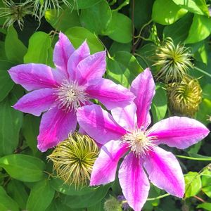 ①今年の春先にお迎えしたクレマチス・ドクターラッペルが咲いていました🌸 最初は嫌々咲いてるみたいに見えたのですが、良く見るとかわいいです🤗 ②天使の首飾りも、花先がクルンとしてきました🎶