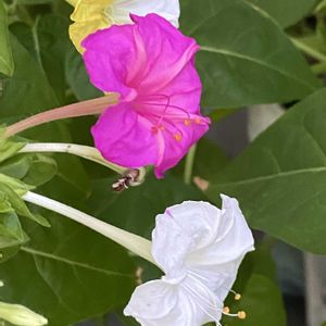 おはようございます 早朝はわずかに涼しい風が、、 オシロイバナはいよいよ終盤戦 珍しくクレマチスが小さなお花をつけました🌸💛🩷🤍🎶🎵
