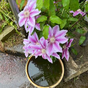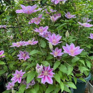 昨年から育ててます。 秋に大きな鉢に植え替えして、剪定したら、いっきに成長してお花いっぱいです🤗✨ ※YouTubeのクレマチスの剪定動画で登場した株です^^*