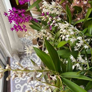 デンドロビウム キンギアナム ラン科 セッコク属 今年も咲きました💜 アブラムシが発生してしまったので全てピンセットで駆除しました💦