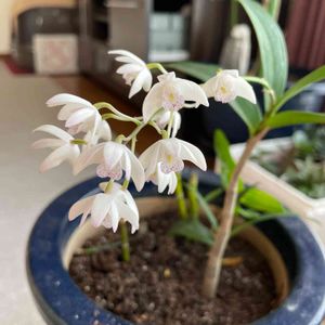 いつの頃だったか忘れましたが、母が殖えすぎて棄てようとしていたバルブを貰い、適当に鉢に放り込んで育てていた"デンドロビウム キンギアナム"🪴 何年か経った今、突如として開花しました🌺 肥料が少なかったかな? 1つしか蕾がありませんでしたが、部屋にいくらかの華やかさをもたらしてくれました😺✨