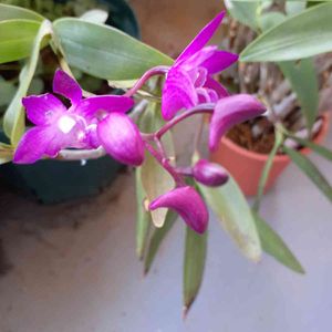 デンドロビウム キンギアナムが開花しました。小さな花。 チューリップが全盛期、ビオラが急に元気を無くし、バラが蕾を付け、紫陽花が葉を出し、ベランダの景色がどんどん変わってます。