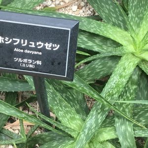 ホシフリュウゼツ (星斑龍舌) 葉に星斑の白い模様が美しい、アロエ が栽培されていました。 アロエの一緒だそうです。 そういえばサボテンは一年中姿が変わりませんね。 落ち葉の様にトゲを落とさないのかしら? 新宿御苑にて