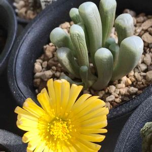 フェネストラリア 五十鈴玉(メセン) お久しぶりです〰️😀 可愛い孫達に会いに厚木から横浜に行ってて6日ぶりの投稿です。 出かける時には蕾だったけど今日は満開に開いてる〰️🌼