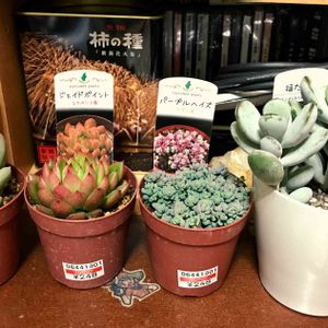 昼休み、愛妻弁当を飲みくだし、脱兎の如く、近所のユニディへ。 冬だと言うのに秋より多数の品種があり、全て買い占めたくなる衝動を抑えに抑えて、買った4鉢。 左からムッチリ可愛い桃尻娘、素晴らしい色合いのジェイドポイント、ウッドストック50周年にして、やっと購入パープルヘイズ、そして、これまたムッチリプリンプリンの福だるま君。 これで、割引き価格で千円ちょい。