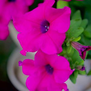 サフィニア・パープル ナス科ツクバネアサガオ属の多年草 サフィニアはサントリーと形成バラ園芸が共同で作出した園芸品種で、 正式名称は「ペチュニア・サフィニア・シリーズ ″サフィニア″」 学名「Petunia×hybrida」 英名「Surfinia」 和名「ツクバネアサガオ(衝羽根朝顔)」 花言葉「咲きたての笑顔」 小庭にて 22.06.28