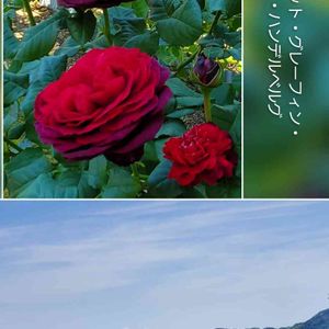 お出かけ…🚘️ 海を一望できる高台のお宅にお邪魔させて頂きました。 鉢植えで立派に栽培された たくさんのバラを見せていただきました~🥰 長ーい名前のこのバラが素敵でした🤭🎶 アストリット・グレーフィン・フォン・ハンデルベルグ 少しピンボケ💦💦 作出国はドイツで 思想家女性の名前だそうです🤭