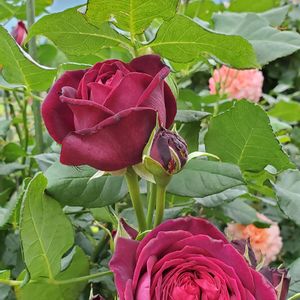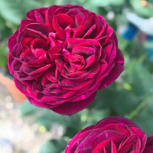 我が家のバラ開花24号 アストリットグレーフィンフォンハルデンブルク ベルベットのような質感の花びらと豊かな香りがお気に入り でも日差しが強いと花も葉っぱもすぐなチリチリになってしまう〜💦