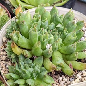 今日は、9月中旬とは思えないくらい、めっちゃ暑い🥵です。 この夏の猛暑と台風🌀の長雨で、たくさんの多肉ちゃんがジュレたり黒くなったりして⭐︎になりました。 センペルビウム も例に漏れませんでした。 割と大きなセンペルプランターが真っ黒に😢 そんな中、無事だったプランターの中の百恵ちゃん。(保険株なし) 小さな子株が見えてきて、 やった〜☆*:.。. o(≧▽≦)o .。.:*☆ 久しぶりに🏷️日曜日はセンペルに参加させてくださいね😊