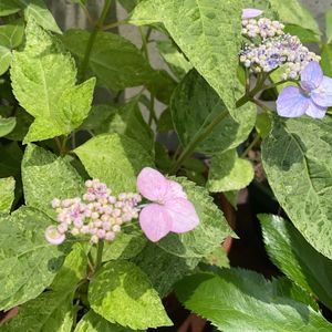 今日のお花アジサイ おはようございます 今日のお花こちら紫陽花九重山 巡り巡って我が家に届きました😊 やっと2輪咲きました 2枚目四季の香ローズガーデン この場所まで徒歩で帰りにショッピングまでして10,000歩😱 家に着くまで遠い💦 3枚目ペペロミア 今年も沢山の花が… これが花とは思いませんでした! いつまでもこのままなんですよー 4枚目は多肉のところからネジバナ 多肉から花が〜あれ?なんか違う えっー、なんで??? 前の家から種が飛んできた? 4m道路隔てて😅植物って凄い🪴