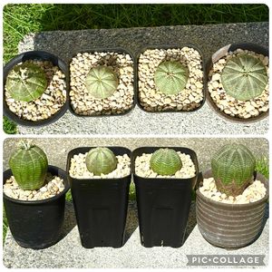 昼前から日中いっぱい雨予報☂️ 予想最高気温24℃ ユーフォルビアゾーン オベサ2株、シンメトリカ1株、バリダ1株は鉢のリサイズ(大きすぎたものは小さく、窮屈になってきたものは大きく)真夏に植え替えましたが、今の所問題なく来れてます🪴 てっぺんから葉を出してるものがチラホラあるのでのんびりと成長して下さいな🌿 しかし、オベサ系は可愛すぎる😂