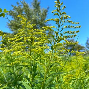 こんにちは♪ 小石川植物園の散策 💛背高泡立草(セイタカアワダチソウ) キク科アキノキリンソウ属 多年草 茎を乾燥したものは、スダレやハーブ などの材料に利用されます ハチなどの虫によって受粉する虫媒花で、風で花粉が飛んで受粉する風媒花ではありません。 花粉症の原因となるブタクサに似ていますが、花粉も比較的重く飛びにくいため、花粉症とは無関係だと言われてます。