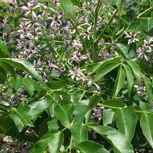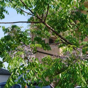 近くの公園にウォーキング中見付けました。始めてみる花で、凄く小さな花がかたまって咲いています。5~6m位の木です。木の皮は杉っぽい。せんだんと分かりました😂