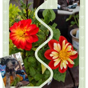 おはようございます😃 今日はワンワン祭り🐶の日ですよ~ 皆さん沢山投稿して癒されましょう~♪ ダリア2種類さいてます🏵️ ニコル🐶冷え冷えマットでまったりしてたり、定位置の椅子💺の上から伸び~~っとしてたり👀📷️✨