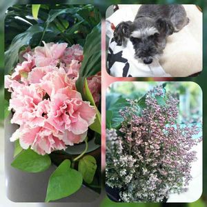 こんばんは😊 こちらは明日一日中雨☔の予報出てます。 いま関東より西の皆さんは雨降りなんでしょうね😅 いま乾燥しているので、雨でも良いのですが、唯一犬🐶🐾の散歩がお互い苦痛ですかね💦 ピンクの花何の花か分かりませんが、イオンモールの通路にまたまたありました。そしてお馴染み愛犬ニコル。マッタリしている所をパチリ📷