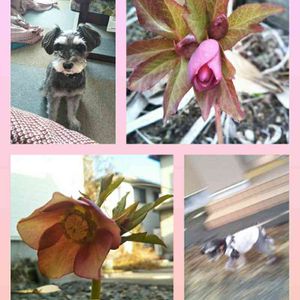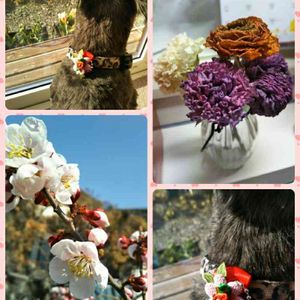 今日は予想通り天気☀も良く暖かい〜いえちょっと草取りしただけで暑い💦 いっぱい服来てますが(笑) 桜🌸ちらほら咲き始めました。ニコルも昨日トリミングに行ってきてカラー(首輪)の飾りが桜🌸っぽ〜い😍 右上はラナンキュラスドライにした物。色はあせてはいますが、ま、こんなもんでしょ😂😂