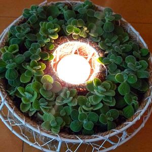 おはようございます👋😃 葉牡丹リース、種蒔きから1ヶ月と2週間。キャンドル🕯️リースとして飾ってみました😊 中のキャンドル🕯️は、以前作ったボタニカルキャンドル。 キャンドルの灯りで、葉牡丹がより色付いて見えます。実際はもう少し薄い紫。混合種を蒔いた葉牡丹、良い感じで全体に紫が散らばってます🤗 (2022/10/16撮影)