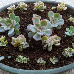今日のお花🌱エケベリア 🔰初めての葉押しで生まれた ヘラクレスのお子様達 平鉢へ移植しました こんな感じで良いのかしら? 2025.6-103