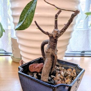 丸坊主にしたフィカス・ウンベラータの芽が出てきました。6月いっぱいは外で日光浴させます。🪴