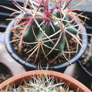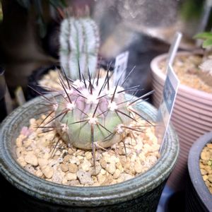 コピアポア属の黒王丸。 小さい実生株です。 お迎え時は全体白トゲでしたが、成長的は黒トゲが出てきました。 格好良くなりますように!