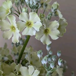 おはようございます😊 ライムグリーンの色の プリムラジュリアン マスカットのジュレが咲いていました🌼 フリル咲きで華やかです😄