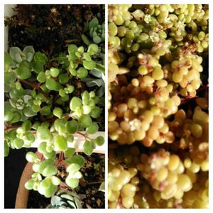 今日は〜😊 今日は、朝からポカポカ陽気‼️ 動くと、暑いくらいです😅 去年、なかなか咲かないで、もう諦めた頃に咲いたミセバヤさん💕💕 新しい芽🌱が出てきてくれて嬉しい〜〜😍 でも、よく見ると、左側に何か花芽の様な物と蕾の様な物が…😅😥 これって何⁉️😂💦💦 まさか、もう花が咲くなんて、無いですよね⁉️😥💦 ミセバヤさ〜〜〜〜ん‼️