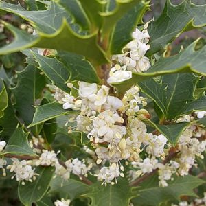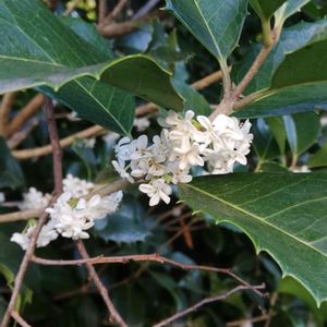 こんにちは めったに 見ることがない花 強いジャスミン系の香り… こんなに花が咲いたのを見たのは はじめてです… よく見ると金木犀の花と似ている ような… 葉っぱが似ている わたしの家の 玄関前のクリスマスホーリー君 とは まったく別の植物… 日本在来種の 柊 2022 霜 月