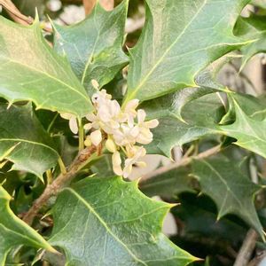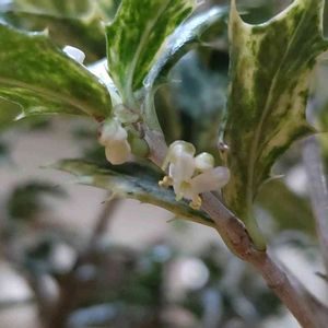 柊✨ 葉っぱが小さなヒイラギ 🌿 花芽のつぶつぶ発見✨😍 香りの良い白いお花が咲きます🤍 モクセイ科モクセイ属🍀 柊 香姫?