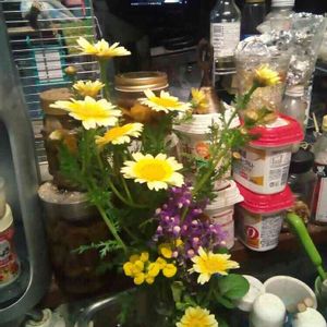 春菊の花が好きなおばあちゃんからリクエストがあり、食べずに花を楽しみます🎵