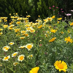 お仕事やっと終わりました。明日は待ちに待ったお休みだよ!ほったらかしの庭に 春菊の花が咲いてます😅食用に植えたのに食べずに花咲いてます\( ˆoˆ )/