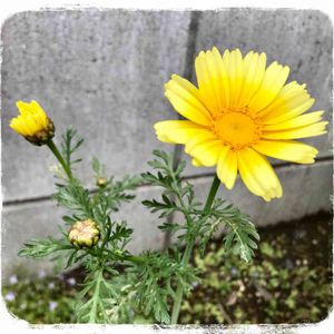 雨あがり 雲り空… 青い空だと お似合いなのに… 春菊の花 ♡