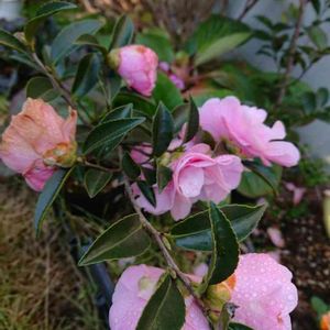 こんにちは👋😃☀️ 山茶花〔その1〕 近所の公園脇に、可愛い山茶花サンが咲いています😍 フローラルピンクでとても可愛いです😍💕