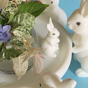 庭のハツユキカズラさんを摘んできたら、うさぎさん達が寄ってきました🐇 おひさまが当たると白やピンクになってかわいいです🩷