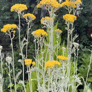 シロタエギクさんの花が咲きました😊放ったらかしにしていたら私の背より高くなり、そびえ立っています🤭ゴールドクレストさんより高いです