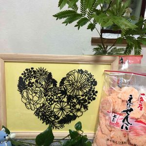 おはようございます💚 昨日、うちのたまちゃんさんから素敵な愛♥️が届きました😊 たまちゃん、忙しい中、体調も完全では無いのに切り絵してくれました💧 感謝しかありません✨✨✨ 素敵な贈り物💗ありがとう😊 またひとつ宝物が増えました✨✨✨ おせんべいもたくさんありがとうございます🍘🍘🍘 みんなでワイワイガヤガヤ頂きますね🎶 素晴らしい切り絵です✨✨✨ 皆さまも、ご覧下さいね💕