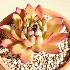 🎄🎁Marry Christmas🎁🎄 エケベリア クリスマス🪷 お名前がクリスマスだから、イチゴのカップに植えました🍓 3年目で子株が大きくなり、花芽も出てきました🙌