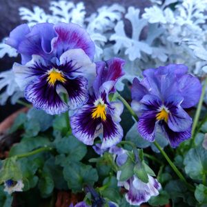 税込¥74のノーブランドのビオラ、なかなかいい感じになってきました❣️ 販売店のお手伝いのおっちゃんの話だと「サトウ園芸さんの種だよ♪」 眉唾ものだけれど可愛いから良し♥️
