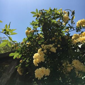 薔薇の中では先頭切って咲き出すモッコウバラ ここ通ると微かに香ります♫ 何もしなくてもどんどん咲いてます