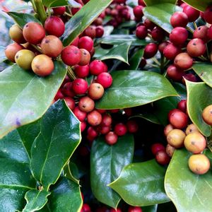 キュンキュン乙女倶楽部の🏷️グリーンワールド🌿 1⃣ 4年前に足利フラワーパークからお連れしたチャイニーズホーリー🍀 クリスマスの赤い実🔴が嬉しくて✨ v(´▽`*)