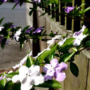ニオイバンマツリ(匂蕃茉莉) ナス科 ブルンフェルシア属 別名─ブルンフェルシア 花言葉…浮気な人 夢の名 幸運 熱心 *咲き始めは、濃い紫色で、次に薄い紫色、最後に白色になる